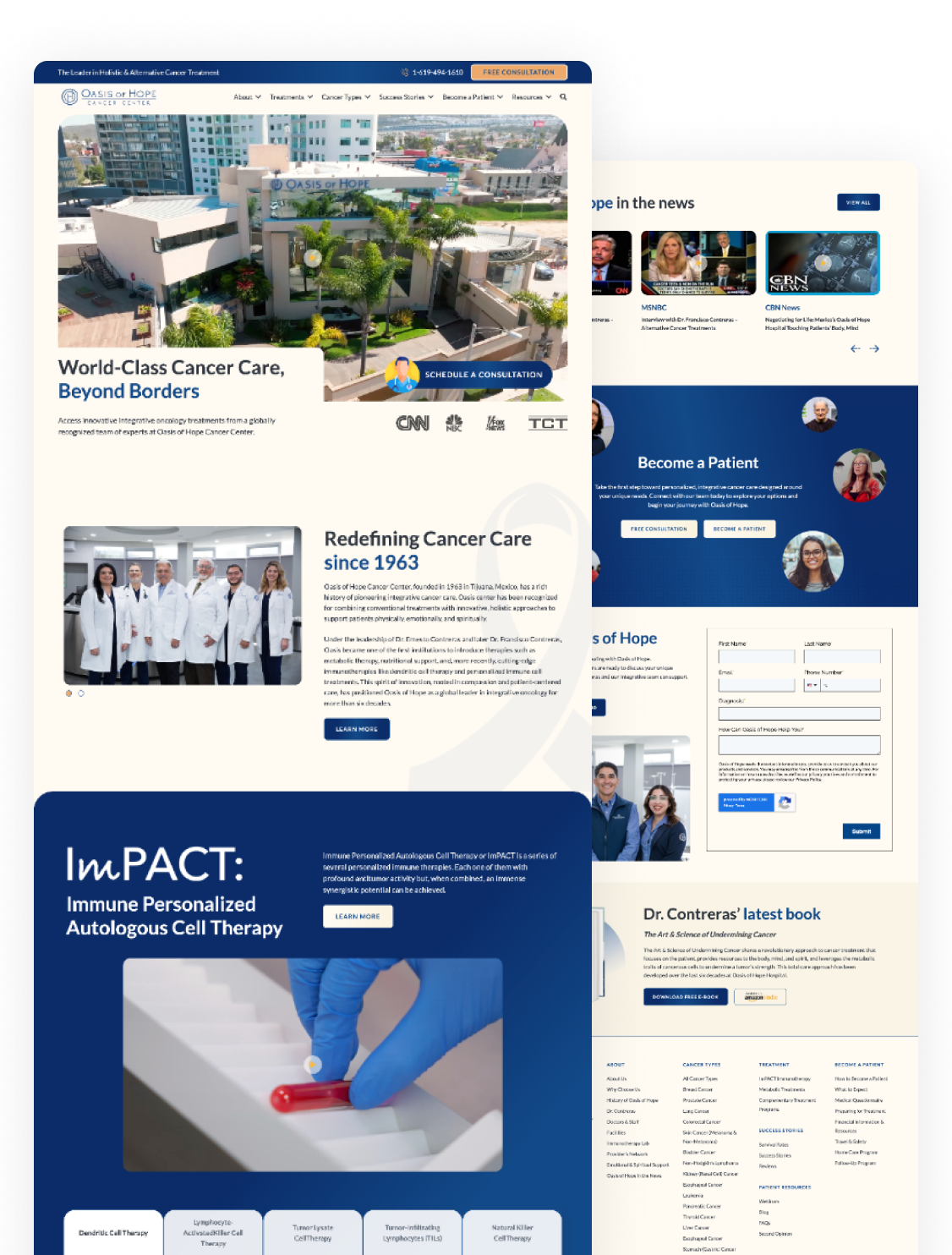 Oasis of Hope is a cancer treatment hospital in Tijuana, Mexico offering integrative and metabolic therapies to patients worldwide. Dog and Rooster rebuilt their website from the ground up — launching over 130 pages across treatments, cancer types, doctor profiles, patient resources, and more on a fully ADA-compliant, SEO-optimized WordPress platform.