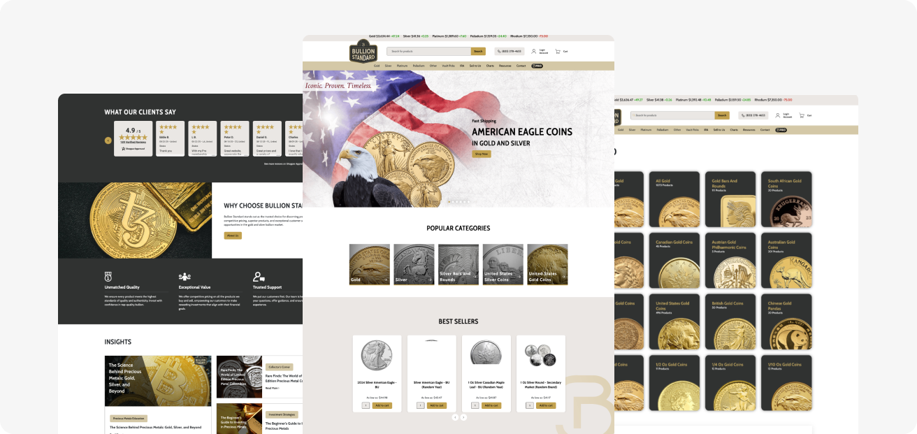 Bullion Standard is a startup company that had no existing website or social media presence. As a website design company, we were tasked with creating an e-commerce platform for Bullion Standard