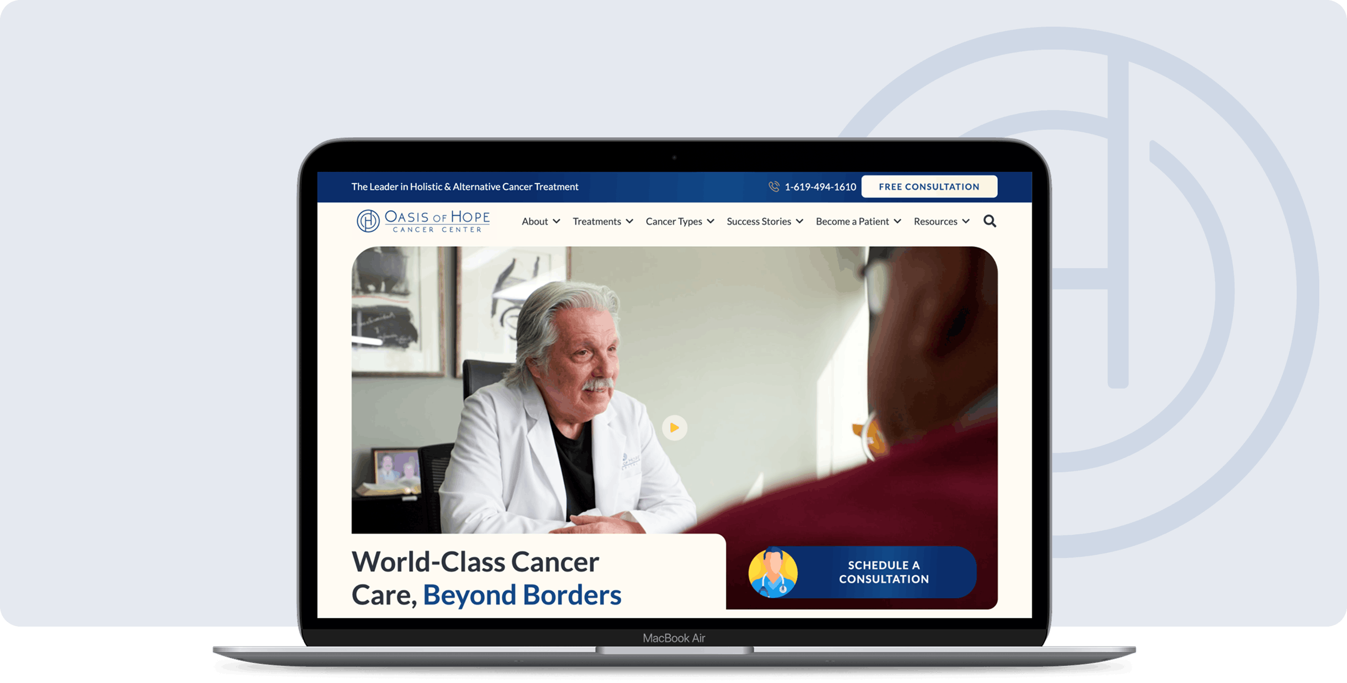 Oasis of Hope is a cancer treatment hospital based in Tijuana, Mexico, offering integrative and metabolic cancer therapies to patients from around the world. Dog and Rooster redesigned and rebuilt their website from the ground up — creating a large-scale, content-rich platform that serves patients, families, referring physicians, and medical staff.